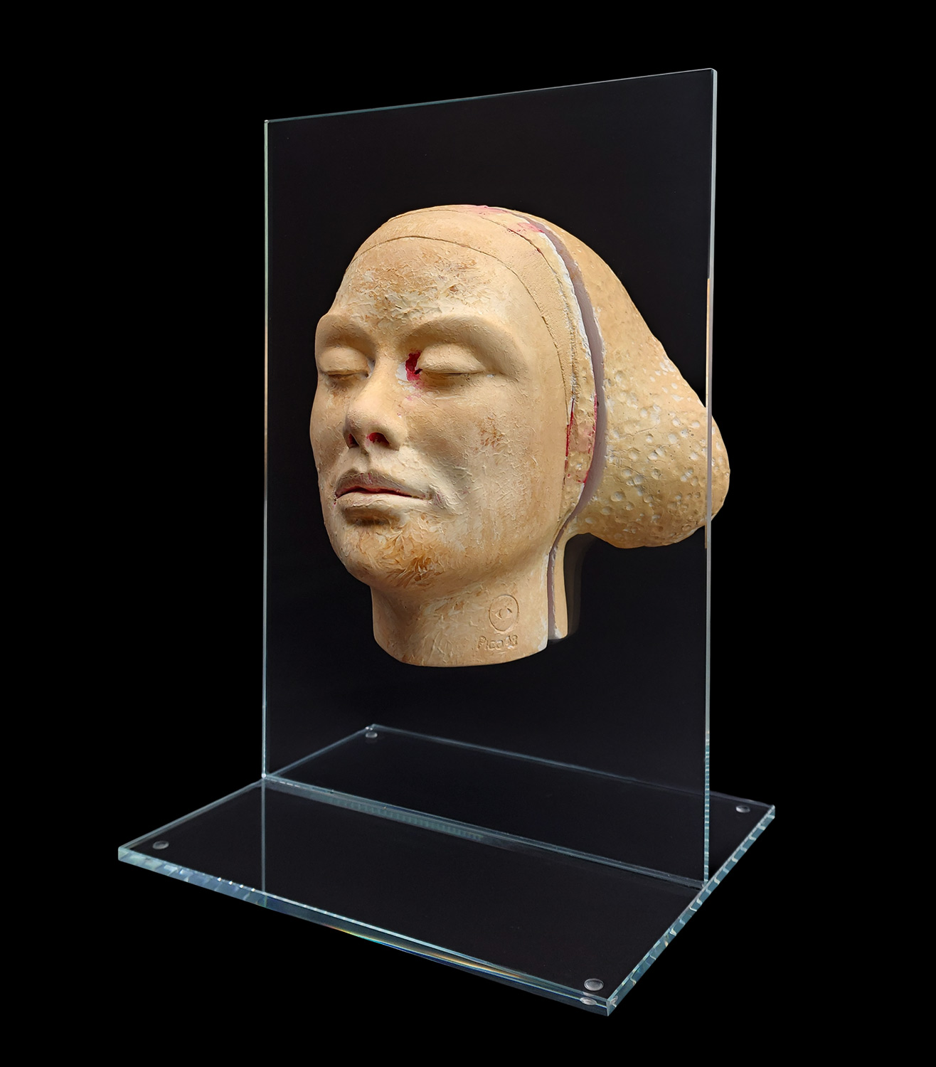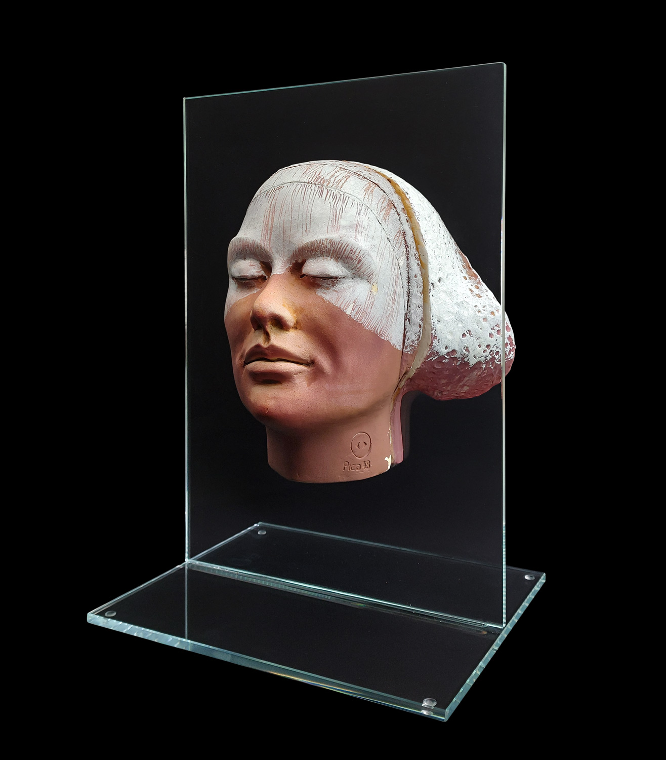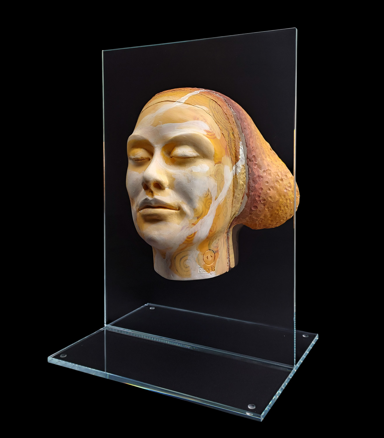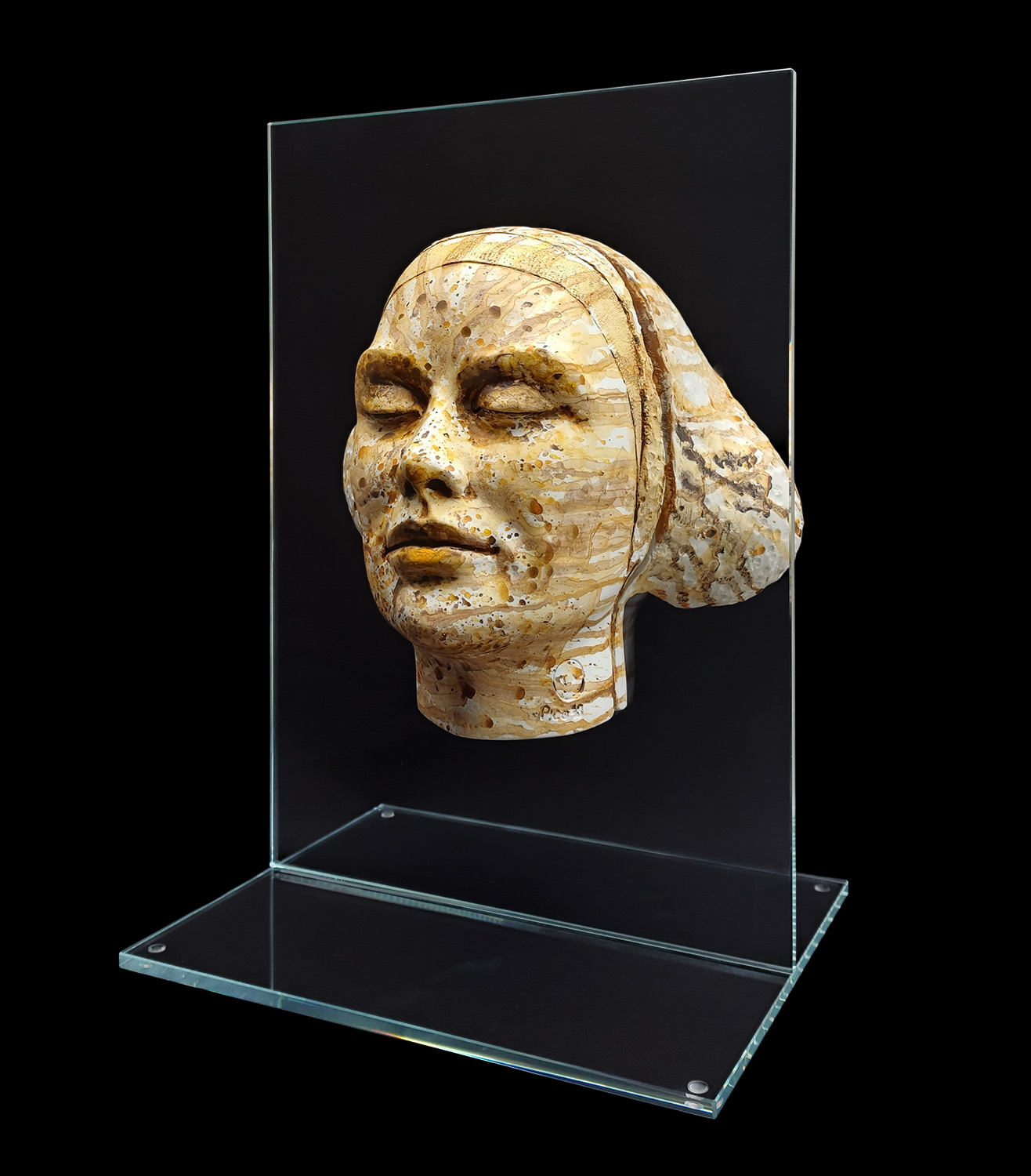 Gesso alabastrino, dipinto con acrilico da C0110, su vetro